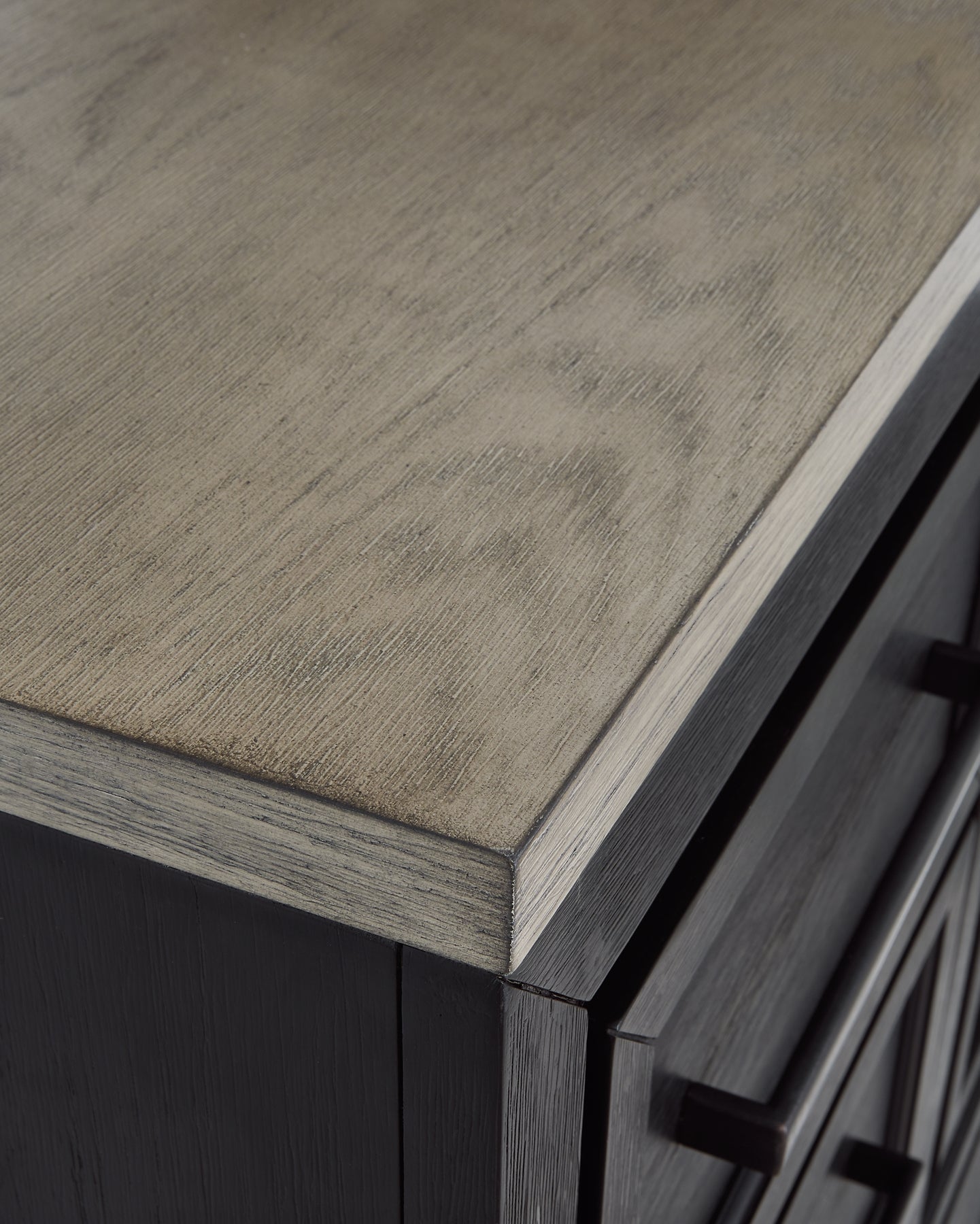 | Details | B989B5: Includes California king panel headboard, storage footboard, and rails with roll slats, Made with hardwood solids, select oak veneers and engineered wood, Two-tone finish (brushed black and dusty grayish brown wood tone), Headboard with picture frame moulding, Footboard with two deep drawers, Smooth-gliding soft-close drawers with fully finished interiors and dovetail construction, Sleek drawer pulls with black finish, Bed does not require additional foundation/box spring; accommodates most zero clearance adjustable bases with the addition of a bunkie board, Mattress available, sold separately, Assembly required, B989B1: Includes dresser and mirror, Made with hardwood solids, select oak veneers and engineered wood, Two-tone finish (brushed black and dusty grayish brown wood tone), Sleek drawer pulls with black finish, 11 soft-close, smooth-gliding drawers with fully finished interiors and dovetail construction (top drawers felt lined), 5 drawers with brushed black finish; 6 drawers with grayish brown wood tone, 3 drawers located behind each door, Mirror mounts to back of dresser, Assembly required, B989-48: Made with hardwood solids, select oak veneers and engineered wood, Two-tone finish (brushed black and dusty grayish brown wood tone), Sleek drawer pulls with black finish, 5 soft-close, smooth-gliding drawers with fully finished interiors and dovetail construction (top drawers felt lined), 3 pull-out trays (felt lined) and 2 adjustable shelves behind door, B989-92: Made with hardwood solids, select oak veneers and engineered wood, Two-tone finish (brushed black and dusty grayish brown wood tone), Sleek drawer pulls with black finish, 2 soft-close, smooth-gliding drawers with fully finished interiors and dovetail construction, 110V power supply with dual USB charging port, Power cord included; UL listed, | |